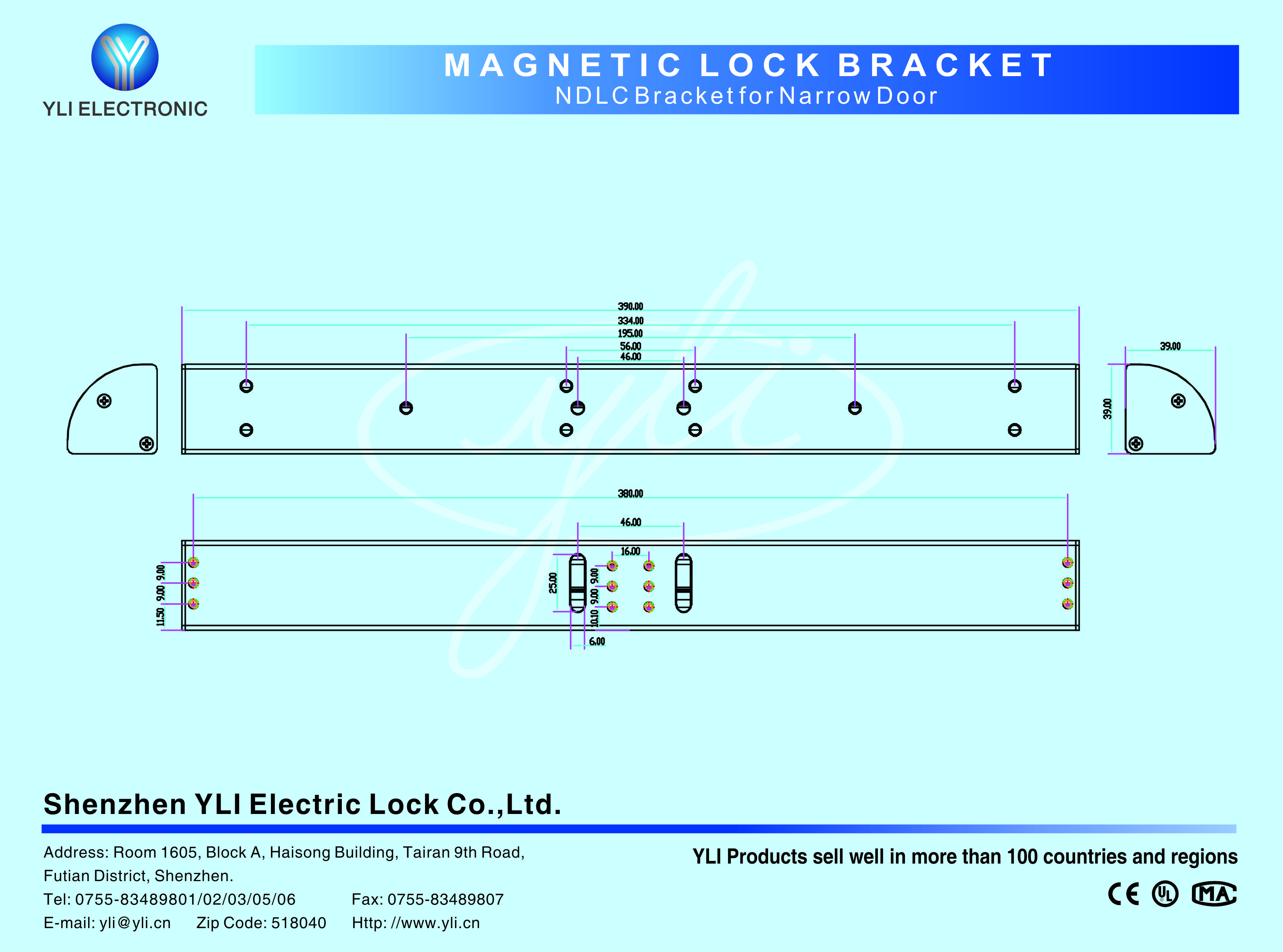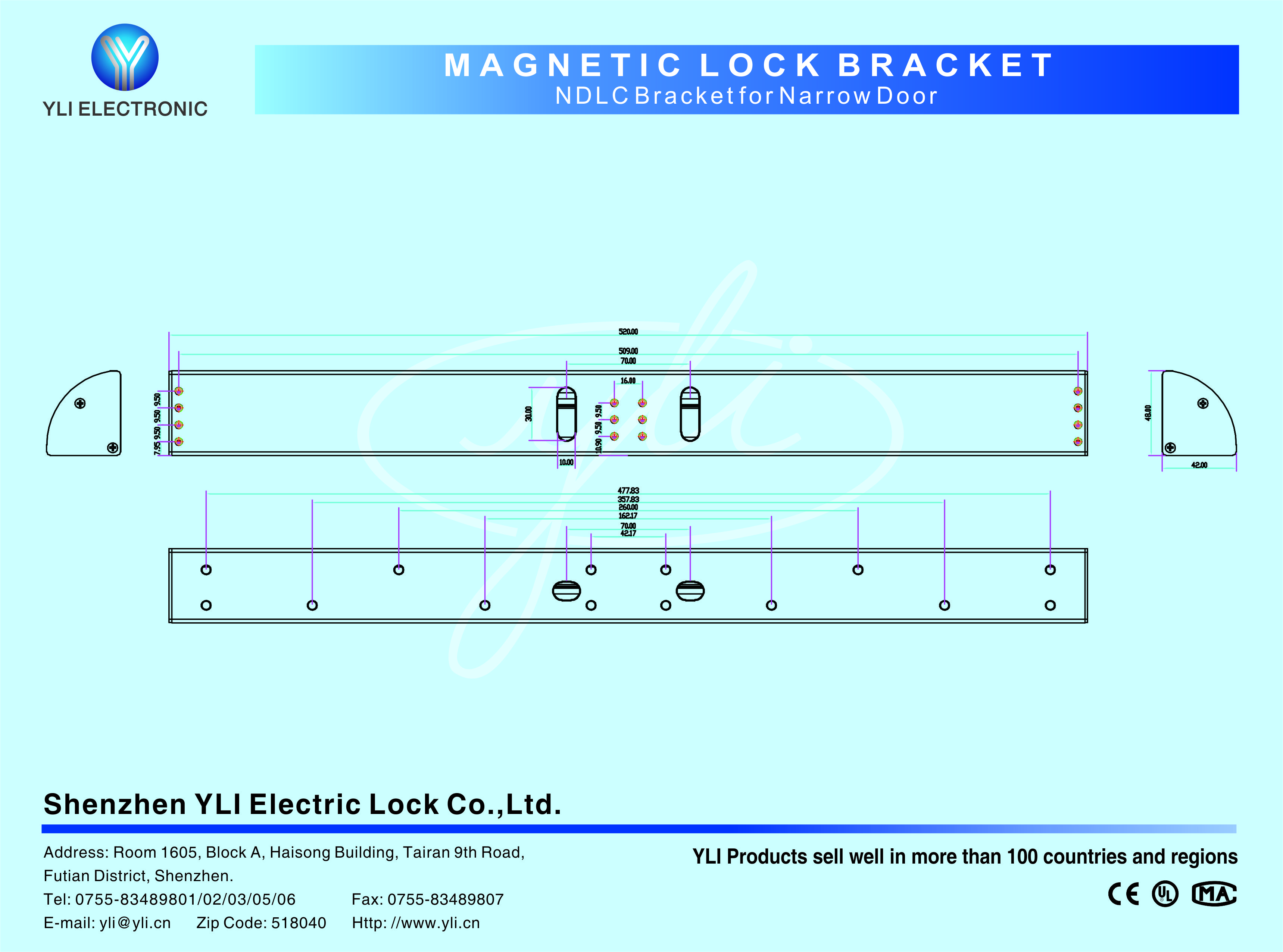 LC Bracket for Narrow for Double Door 1.Most commonly used are MBK-180DLC/MBK280DLC/MBK-350DLC.2.The wire can also be buried inside and it can be installed on the outward opening door. 3. Please be note that MBK-350LC-W is for waterproof magnetic lock.