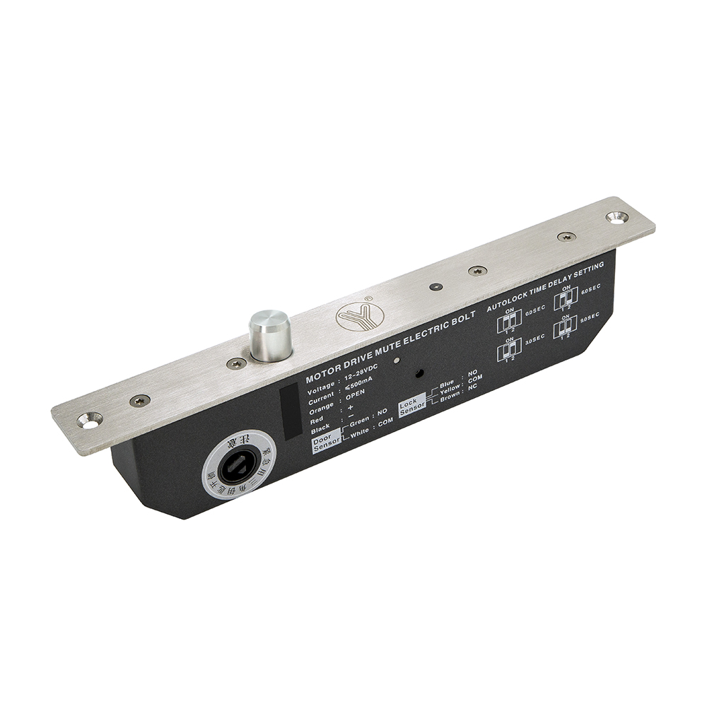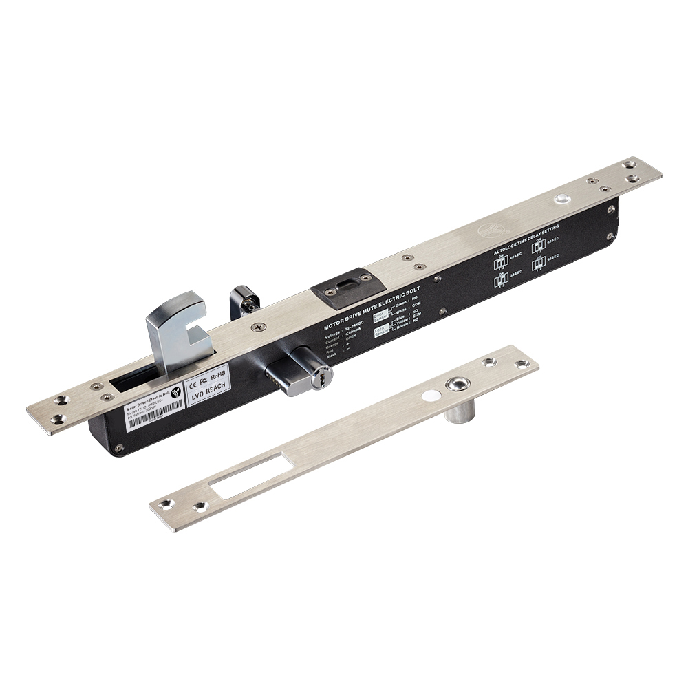 Motor driven mute electric bolt,the bolt is controlled by motor drive to realize lock and unlock. The driving force of the motor is very strong,the bolt can be pushed out by the powerful thrust of the motor to align the door when the door is deformed or misaligned. The parts are made of lightweight materials, work more smoothly, less resistance, can achieve mute when lock and unlock.The PCB is equipped with an electronic protection device to realize the precise control of locking and unlocking. In addition,compared with the traditional electric bolt which uses electromagnet to lock, which is low power consumption, energy saving and environmental protection.