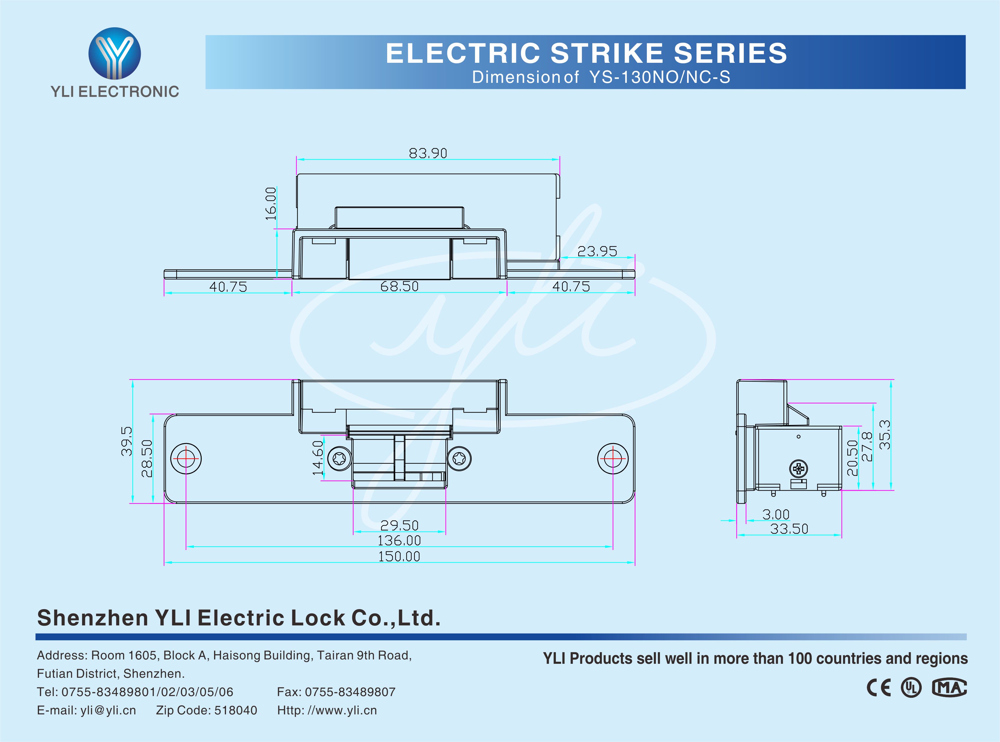 Feature  Fail Secure(YS-130NO-S) ;Fail Safe(YS-130NC-S)