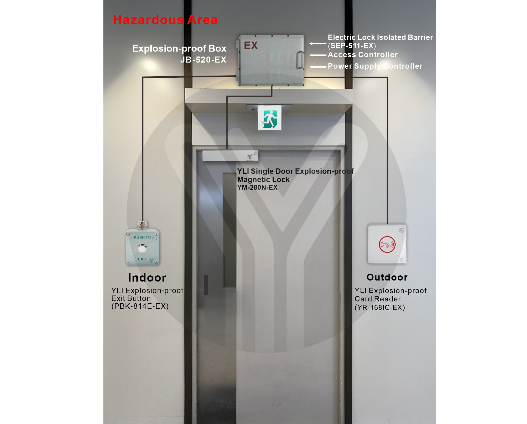 Explosion-proof magnetic lock is a kind of intrinsically safe electromagnetic lock that can be used in inflammable and explosive gas environment. It has simple structure, easy installation and maintenance, wear resistance, high reliability, and can be unlocked by power failure to escape in case of danger. It is especially suitable for petrochemical and other inflammable and explosive places.The explosion-proof electromagnetic lock produced by YLI are designed and manufactured in accordance with the relevant provisions of EU regulations EN IEC 60079-0:2018, IEC 60079-11:2012, EN 61241-11:2006.