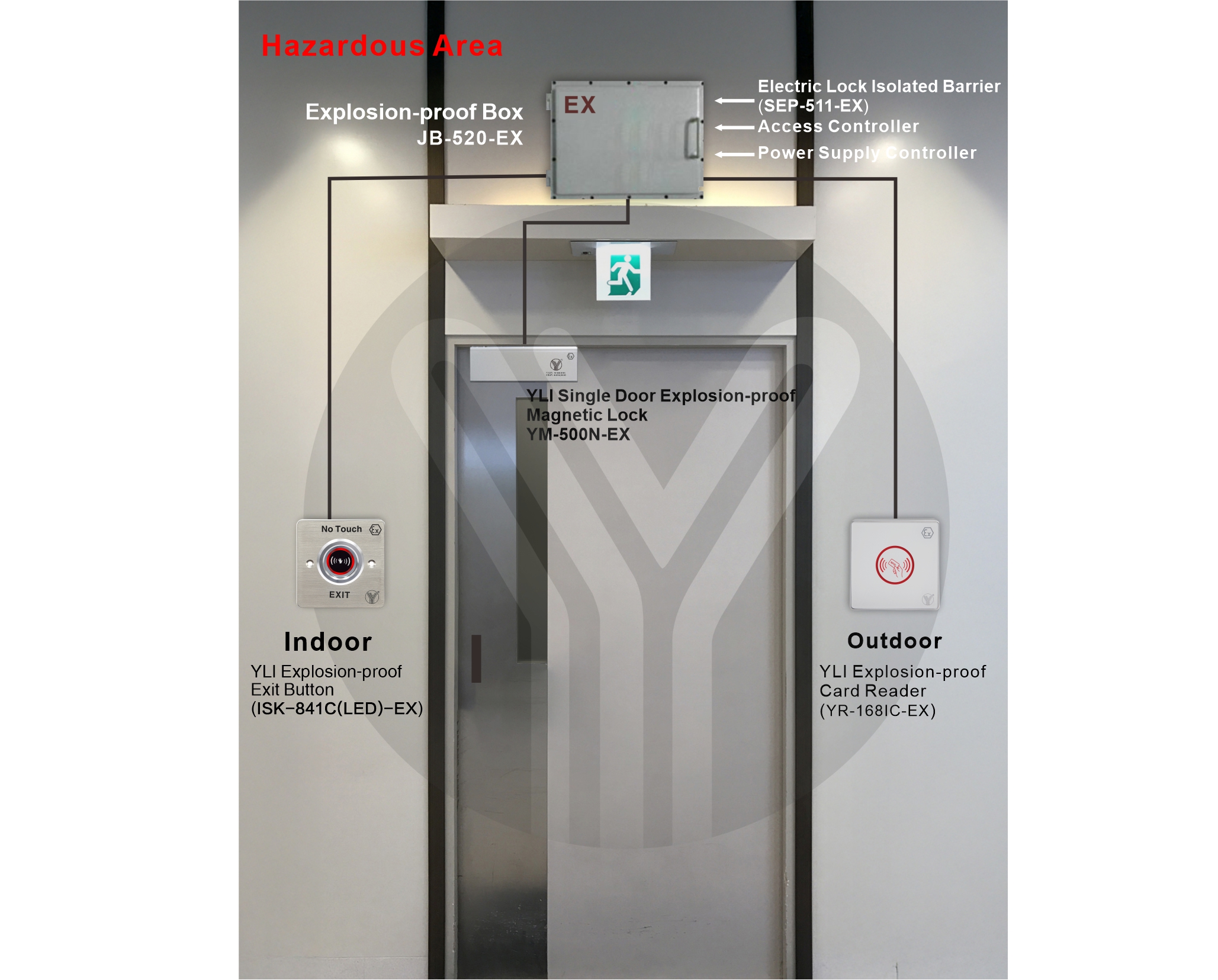 Explosion-proof magnetic lock is a kind of intrinsically safe electromagnetic lock that can be used in inflammable and explosive gas environment. It has simple structure, easy installation and maintenance, wear resistance, high reliability, and can be unlocked by power failure to escape in case of danger. It is especially suitable for petrochemical and other inflammable and explosive places.The explosion-proof electromagnetic lock produced by YLI are designed and manufactured in accordance with the relevant provisions of EU regulations EN IEC 60079-0:2018, IEC 60079-11:2012, EN 61241-11:2006.