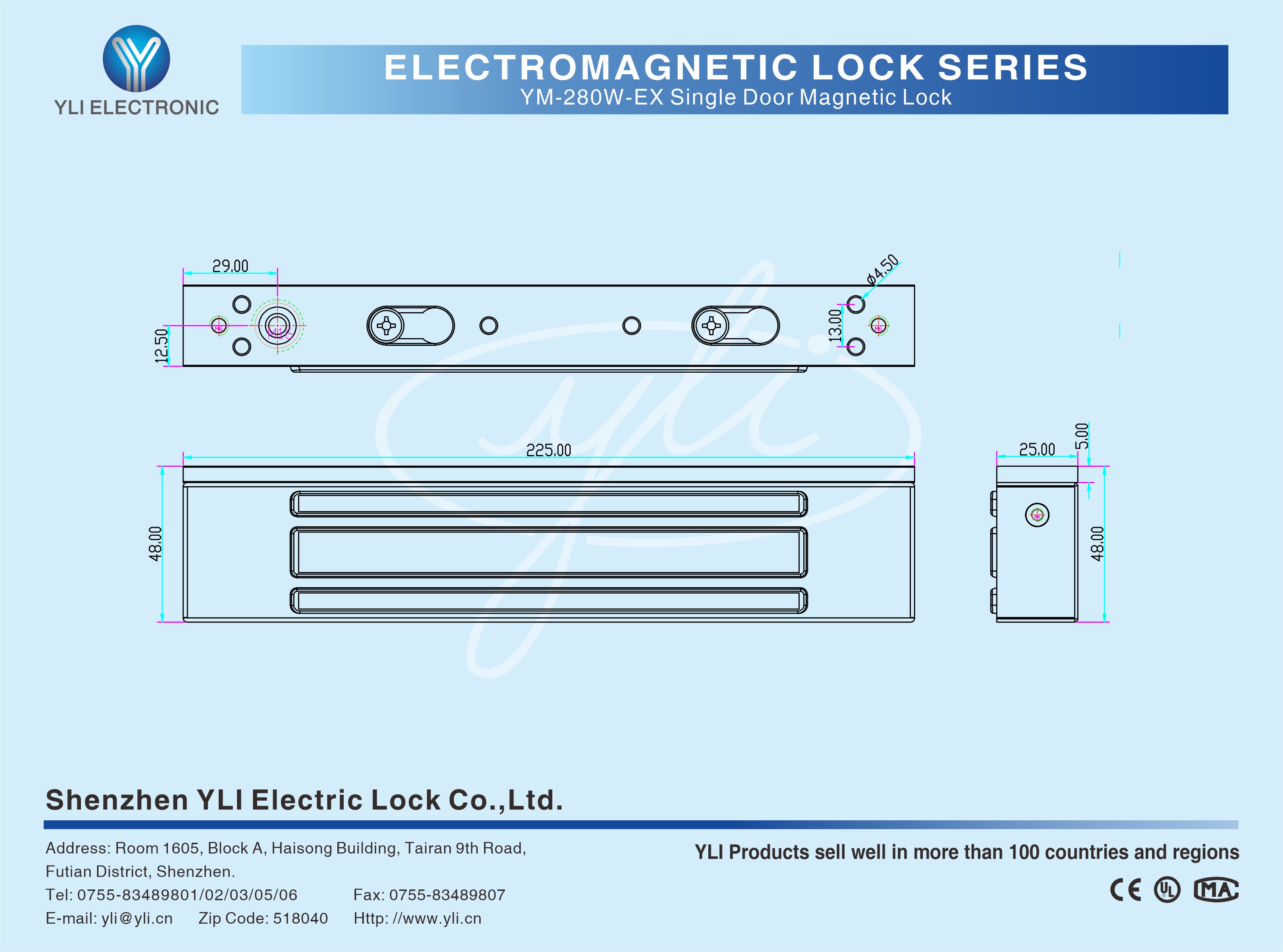 Explosion-proof magnetic lock is a kind of intrinsically safe electromagnetic lock that can be used in inflammable and explosive gas environment. It has simple structure, easy installation and maintenance, wear resistance, high reliability, and can be unlocked by power failure to escape in case of danger. It is especially suitable for petrochemical and other inflammable and explosive places.The explosion-proof electromagnetic lock produced by YLI are designed and manufactured in accordance with the relevant provisions of EU regulations EN IEC 60079-0:2018, IEC 60079-11:2012, EN 61241-11:2006.