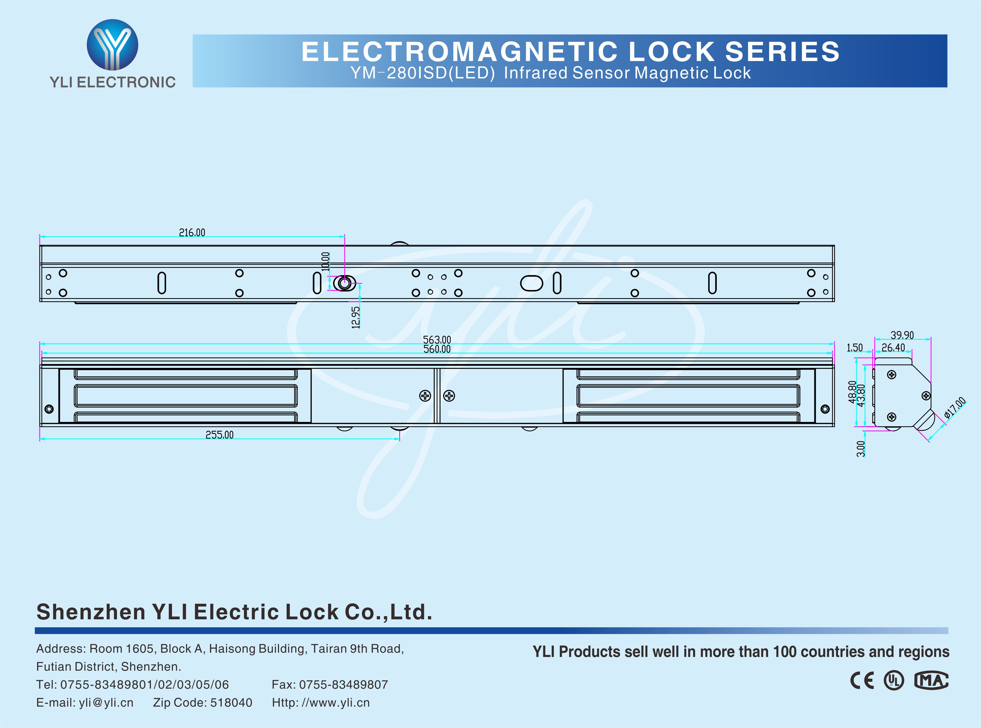 YM-2801SD(LED) Double door magnetic lock is designed for wooden door, metal door, glass door and fireproof door. lt is equipped with an infrared sensor automatic unlocking module, with an infrared sensor distance of 3 meters and a wide Angle of 130 degrees. The lock has an adjustable time delay function of 0/3/6/9 seconds. There is a set of lock status signal (NO/NC/COM) output contacts. The lock body is equipped with a large LED light., The green light indicates unlocking, and the red light indicates locking. YLl magnetic lock cores are produced with robotic laser welding technology, providing 2 to 3 times stronger impact resistance and torsional resistance than conventional production processes. The surface is treated with the internationally leading electroplating process and the lock itself has passed the 240-hour salt spray test in the national laboratory, achieving excellent performance of anti-oxidation, anti-rust and anti-corrosion. Our company offers a complete range of brackets for different locks.