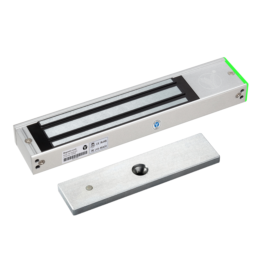 YM-350(BLED) Single door magnetic lock is designed for wooden door, metal door, glass door and fireproof door. There is a set of lock status signal (NO/NC/COM) output contacts. The lock body is equipped with a large LED light, The green light indicates unlocking, and the red light indicates locking. YLl magnetic lock cores are produced with robotic laser welding technology, providing 2 to 3 times stronger impact resistance and torsional resistance than conventional production processes. The surface is treated with the internationally leading electroplating process and the lock itself has passed the 240-hour salt spray test in the national laboratory, achieving excellent performance of anti-oxidation, anti-rust and anti-corrosion. Our company offers a complete range of brackets for different locks.