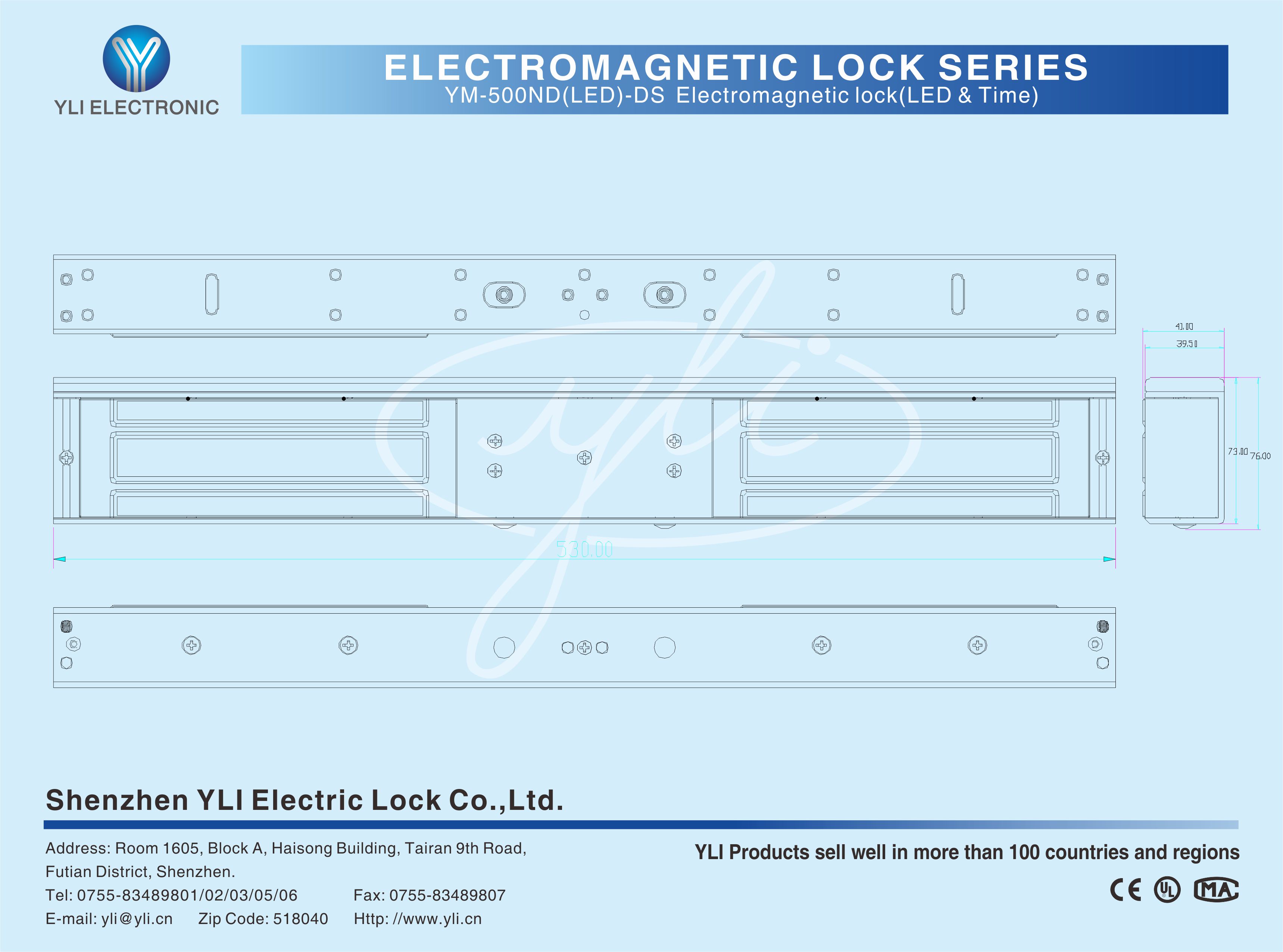 YM-500ND(LED)-DS Double door magnetic lock is designed for wooden door, metal door, glass door and fireproof door. There are both lock status signal (NO/NC/COM) output contacts and door status signal (NO/NC/COM) output contacts. The lock body is equipped with a large LED light. The green light indicates unlocking, and the red light indicates locking. YLl magnetic lock cores are produced with robotic laser welding technology, providing 2 to 3 times stronger impact resistance and torsional resistance than conventional production processes. The surface is treated with the internationally leading electroplating process and the lock itself has passed the 240 hour salt spray test in the national laboratory, achieving excellent performance of anti-oxidation, anti-rust and anti-corrosion.Our company offers a complete range of brackets for different locks.