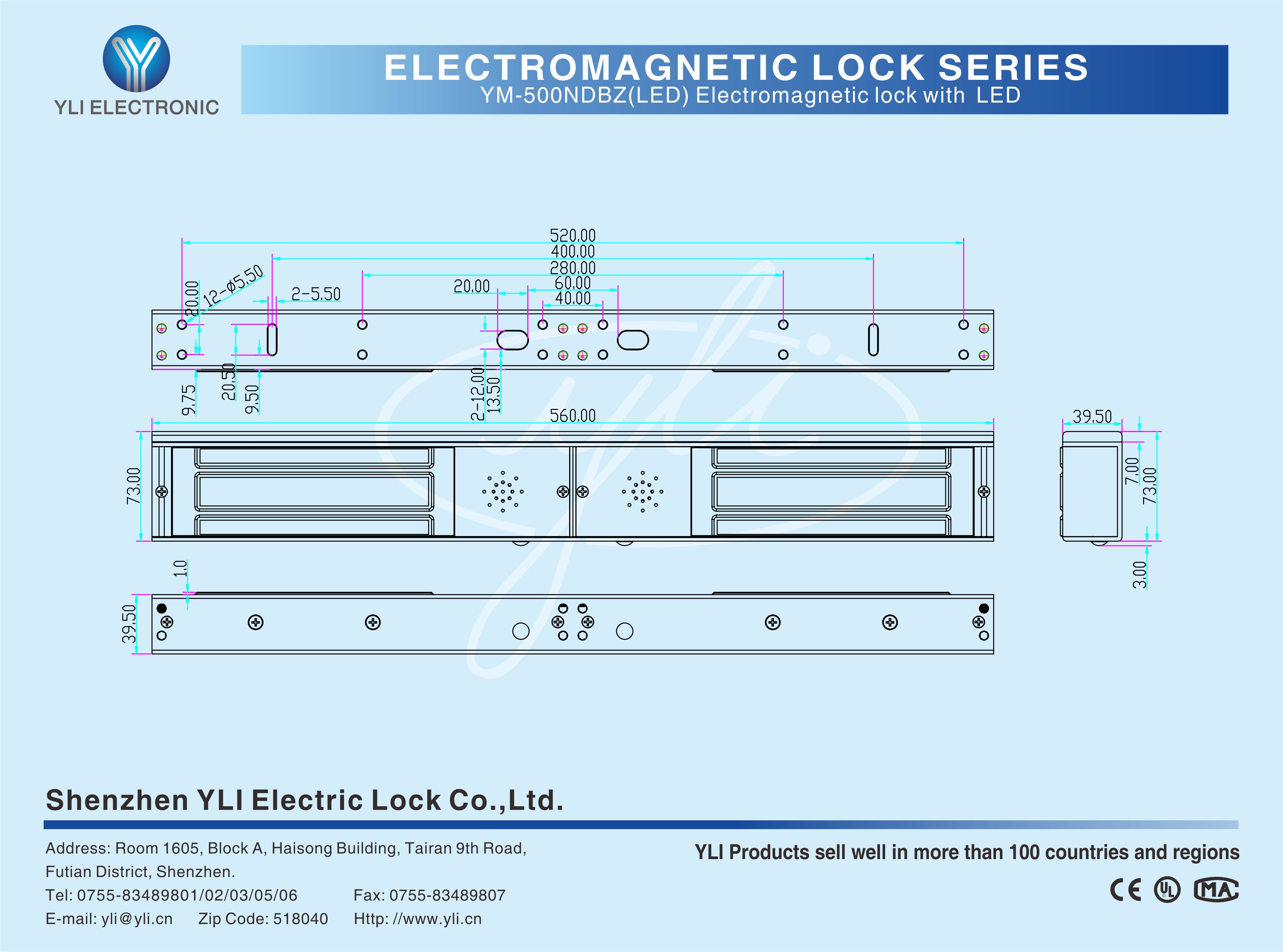 YM-500NDBZ(LED) Double door magnetic lock is designed for wooden door, metal door, glass door and fireproof door. lt is equipped with a set of buzzer alarm.The internal buzzer alarm will sound until the door is closed if the lock is not closed within the set time (0-20 seconds). There is a set of lock status signal (NO/NC/COM) output contacts, which provides real-time feedback for the access control system.The lock body is equipped with a large LED light. The green light indicates unlocking, and the red light indicates locking. YLl magnetic lock cores are produced with robotic laser welding technology, providing 2 to 3 times stronger impact resistance and torsional resistance than conventional production processes, The surface is treated with the internationally leading electroplating process and the lock itself has passed the 240-hour salt spray test in the national laboratory, achieving excellent performance of anti-oxidation, anti-rust and anti-corrosion. Our company offers a complete range of brackets for different locks.