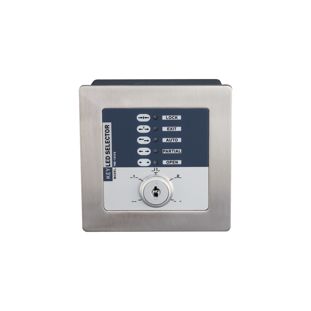 YAD-141FS 五檔鑰匙LED開關通過鑰匙進行切換設置,方便控制自動門的自動、單項、半開、鎖門及常開五種功能指令;可與各自動門配套使用。