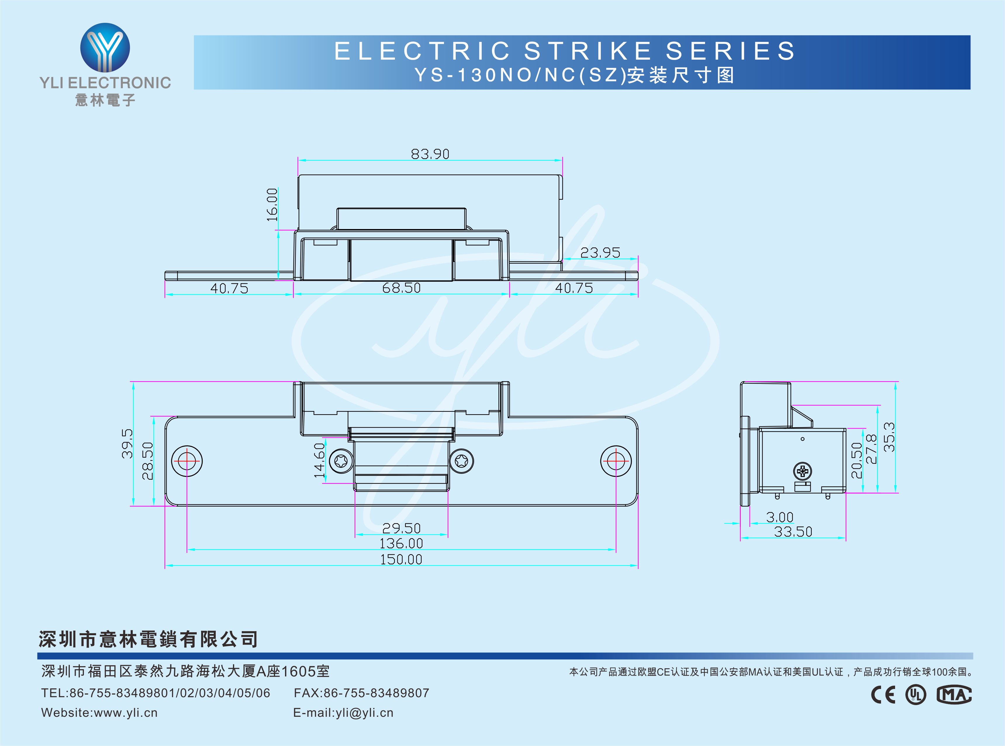 斷電上鎖(YS-130NO(SZ)) ;斷電開鎖(YS-130NC(SZ)) |