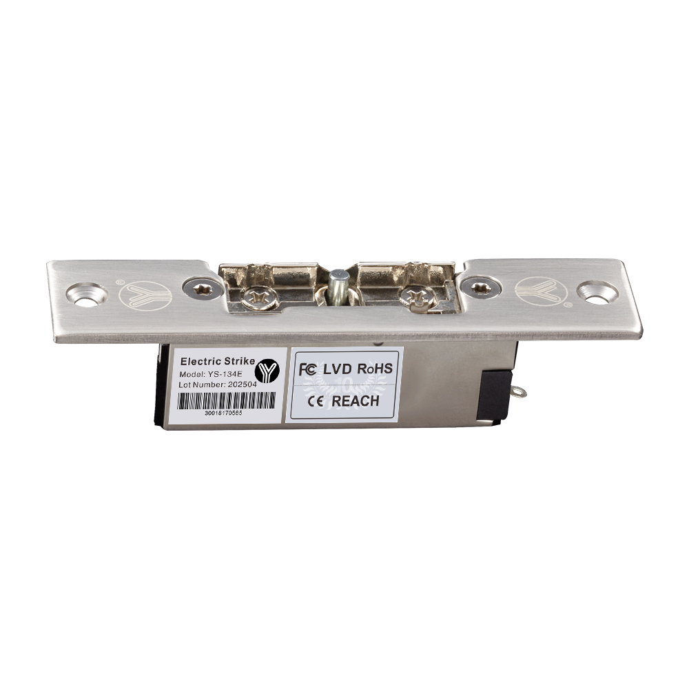 YS-134E/134BE 是一款窄框型可調歐式電鎖口,是針對窄框木門、窄框金屬門等設計的。鎖舌采用鋅合金壓鑄,面板304不銹鋼材質,堅固耐用,承受300kg推力。斷電上鎖安全類型。特點:調節鎖體上的機械撥桿,使電鎖口一直處于開鎖狀態(在通/斷電時都保持開鎖狀態)。