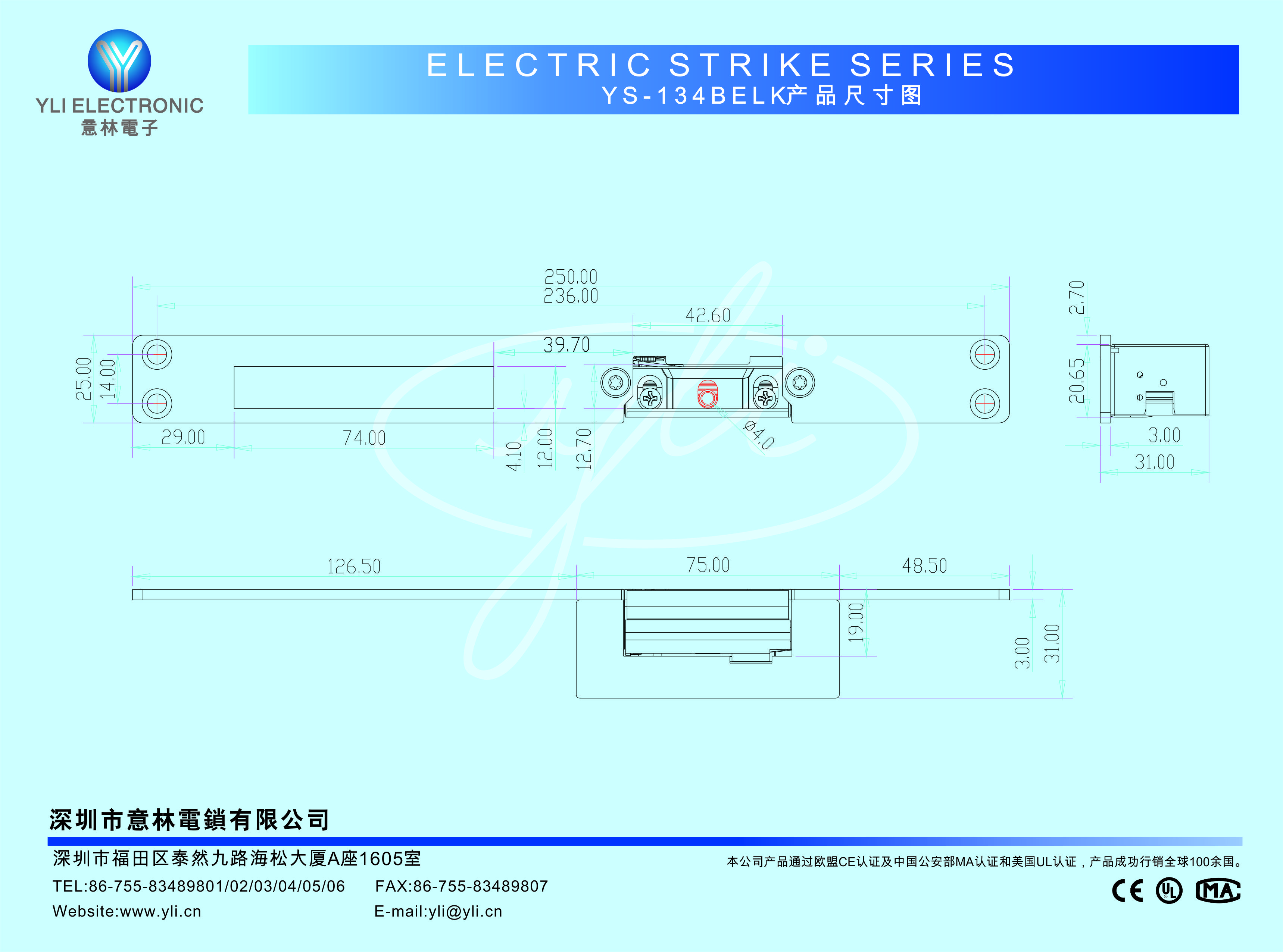 YS-134ELK/134BELK 是一款窄框型可調(diào)歐式長面板電鎖口,是針對窄框木門、窄框金屬門等設(shè)計的。鎖舌采用鋅合金壓鑄,面板304不銹鋼材質(zhì),堅固耐用,承受300kg推力。斷電上鎖安全類型。特點:調(diào)節(jié)鎖體上的機械撥桿,使電鎖口一直處于開鎖狀態(tài)(在通/斷電時都保持開鎖狀態(tài))。