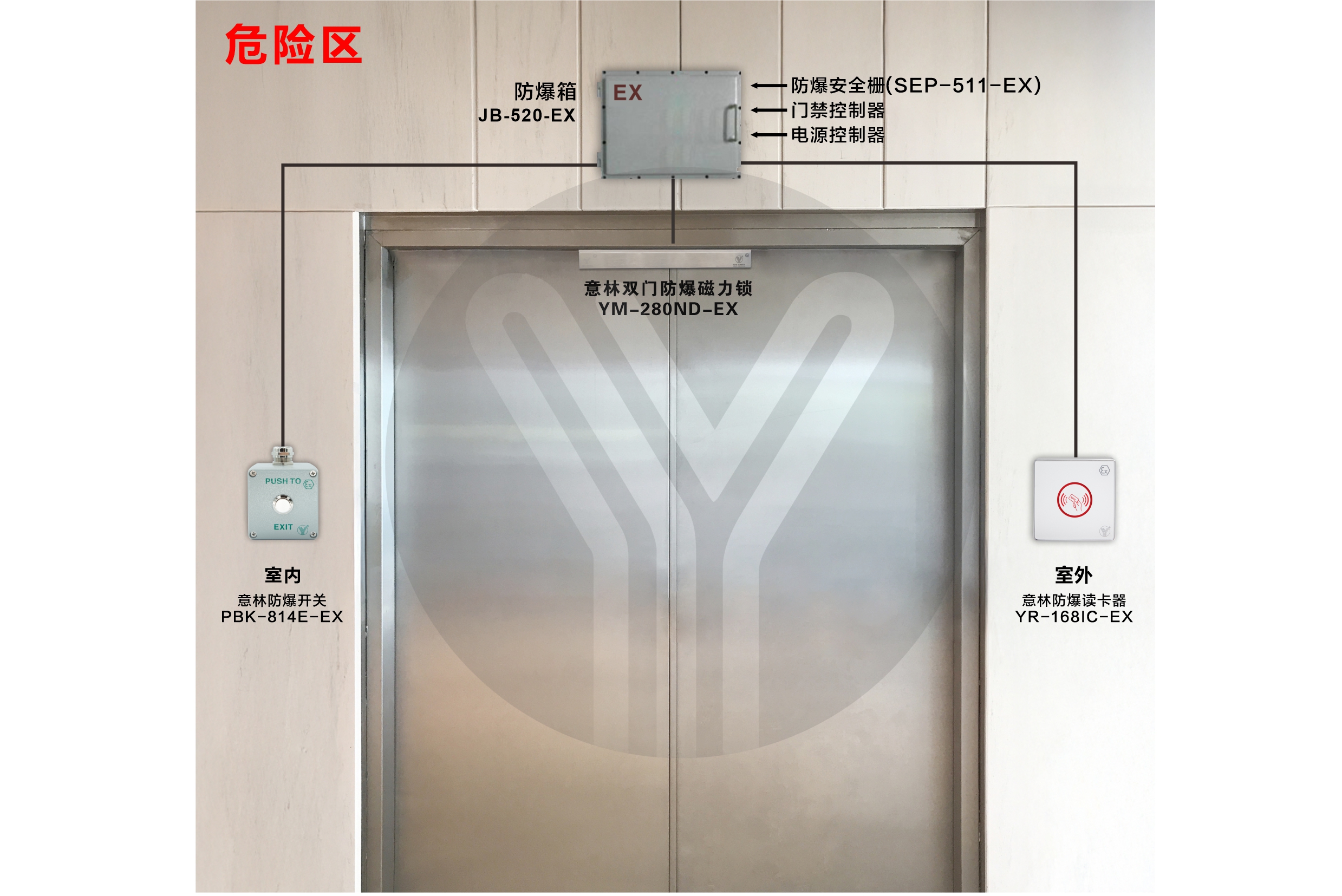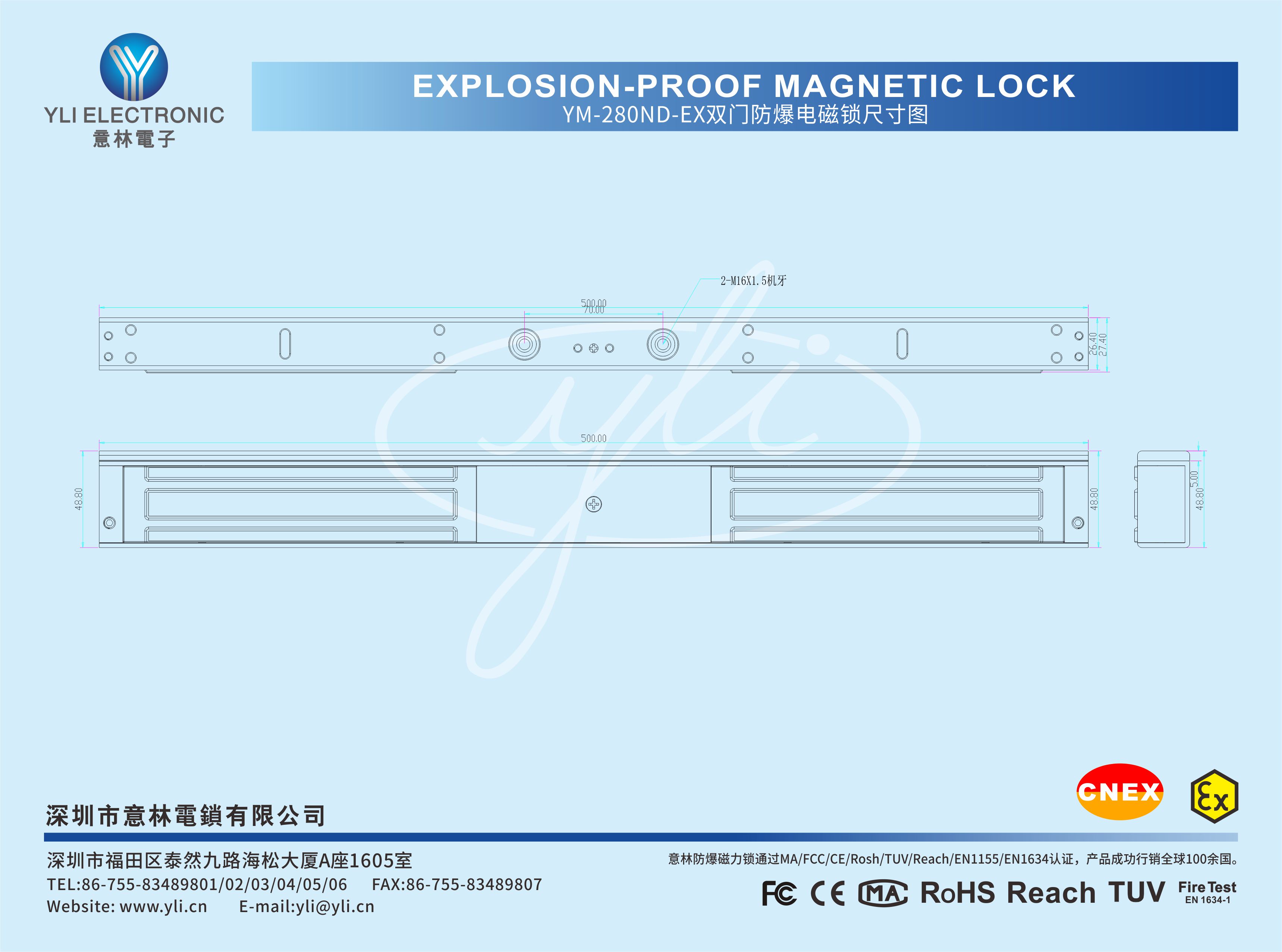 YM-280ND-EX 防爆電磁鎖(磁力鎖)附信號輸出,是一款應用在爆炸性氣體及粉塵環境中的高安全電磁鎖。本產品嚴格按照國家標準 GB/T3836.1-2021【爆炸性環境 第 1 部分 設備 通用要求】GB/T3836.4-2021【爆炸性環境第 9部分由本安型“Ib”保護的設備】中的有關規定設計和生產,產品經國家指定的防爆產品檢測機構檢驗合格,并持有防爆合格證備查。全系列產品通過國家實驗室240小時鹽霧測試,內置溫度保險裝置,內設有一組鎖狀態信號(NO,COM)接點輸出,為門禁系統反饋門狀態信息,品質及工藝均領先業界,廣泛應用于石油石化、港口碼頭、鉆井平臺、醫藥化工、航天軍工、糧食加工,機械制造等場所。在使用本產品前請認真閱讀說明書內容,以保證你能正確使用,避免因不當使用和操作引起或可能產生安全事故,敬請留意。