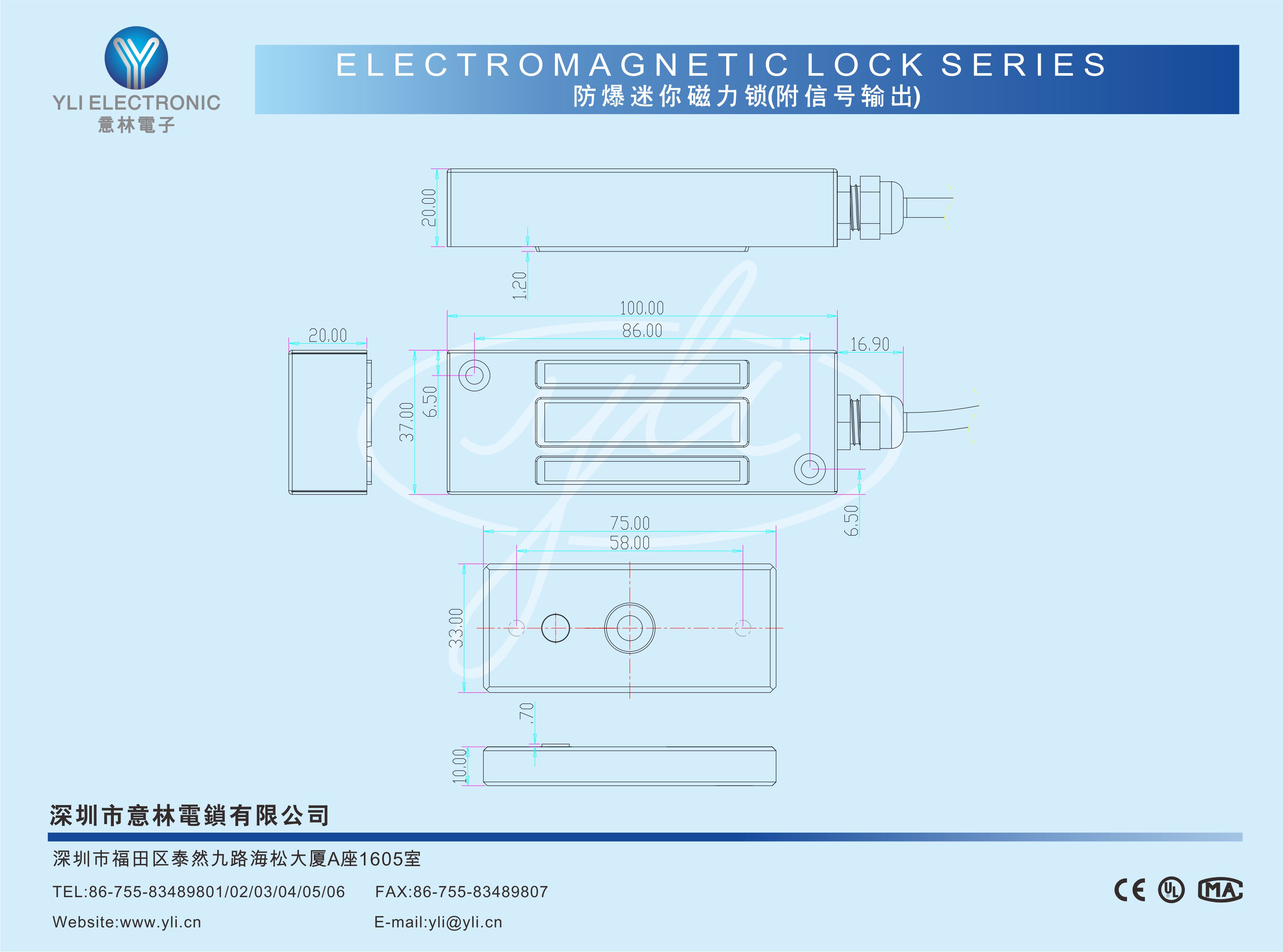 YD-60N-EX 迷你防爆電磁鎖(磁力鎖)附信號輸出,是一款應用在爆炸性氣體及粉塵環境中的高安全電磁鎖。本產品嚴格按照國家標準GB/T3836.1-2021【爆炸性環境第1部分設備通用要求]及GB/T3836.9-2021【爆炸性環境第9部分由澆封型“m”保護的設備】中的有關規定設計和生產,產品經國家指定的防爆產品檢測機構檢驗合格,并持有防爆合格證備查。全系列產品通過國家實驗室240小時鹽霧測試,內置溫度保險裝置,內設有一組鎖狀態信號(NO,COM)接點輸出,為門禁系統反饋門狀態信息,品質及工藝均領先業界,廣泛應用于石油石化、港口碼頭、鉆井平臺、醫藥化工、航天軍工、糧食加工,機械制造等場所。在使用本產品前請認真閱讀說明書內容,以保證你能正確使用,避免因不當使用和操作引起或可能產生安全事故,敬請留意。