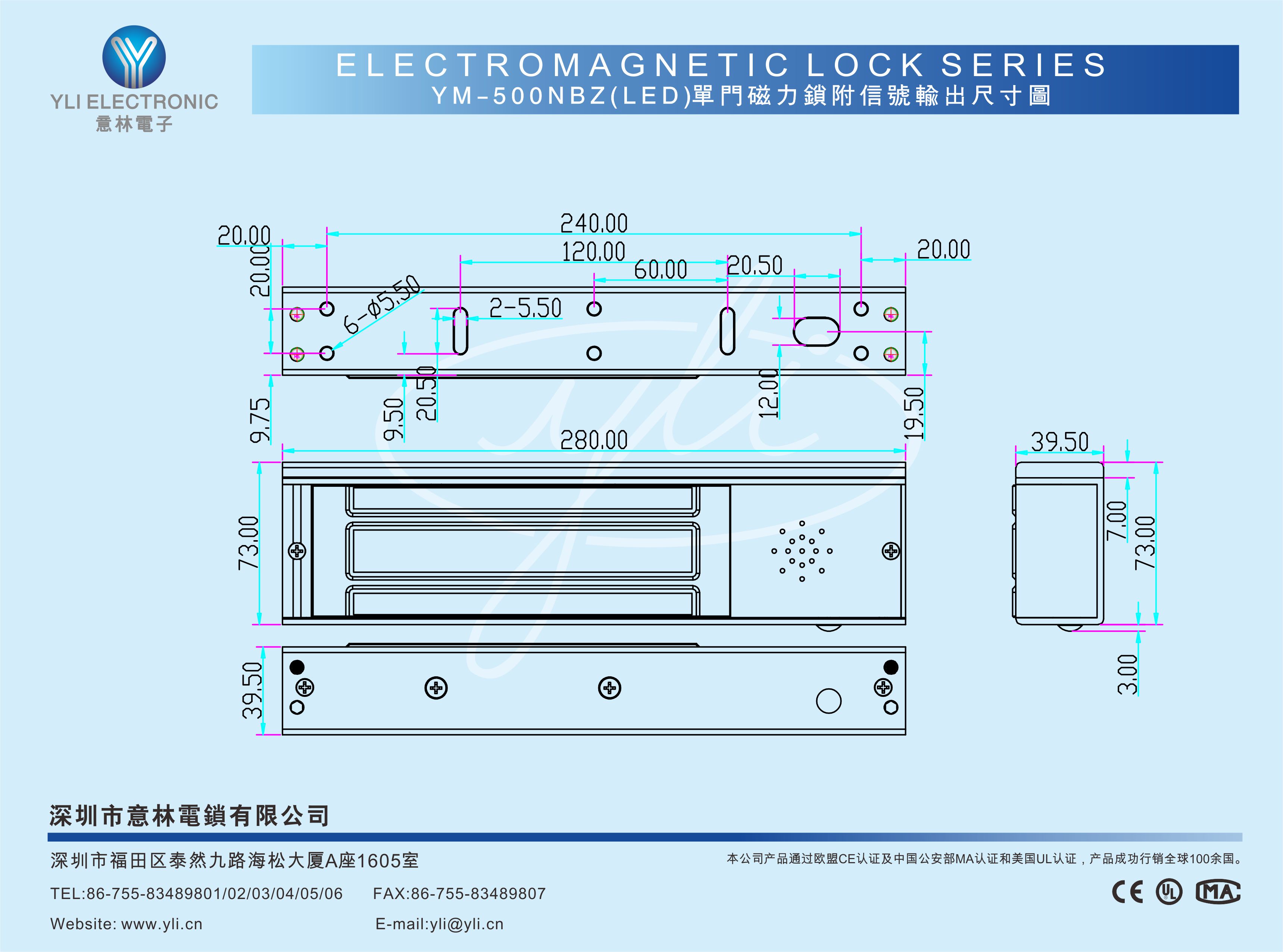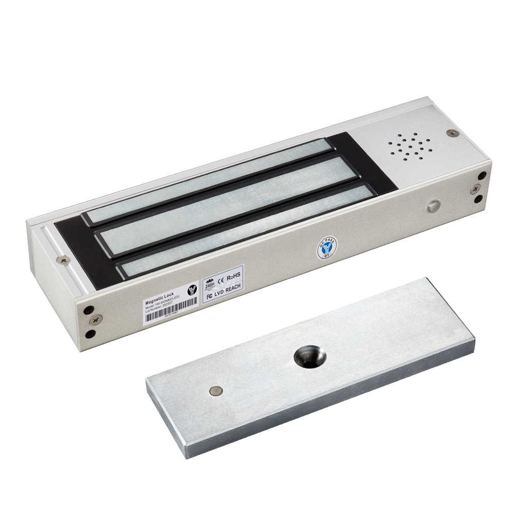 YM-500NBZ(LED)單門磁力鎖附蜂鳴報警器是針對木門、金屬門、玻璃門、防火門等設計的。內置一組逾時關門蜂鳴警報器,當門鎖超過設定時間(0-20秒)未關時,內部的蜂鳴警報器即報警,直到門關閉為止。另設有一組鎖狀態信號(NO/NC/COM)輸出接點,為門禁系統實時反饋信息,鎖體設有加大LED燈顯示,綠燈開鎖,紅燈上鎖。意林磁力鎖加大電磁吸力設計,吸力超強,鎖芯特殊加強焊接工藝,抗撞擊力及抗扭力比常規生產工藝強2-3倍,更堅固耐用。表面處理采用國際領先的電鍍工藝,通過國家實驗室240小時鹽霧測試,達到防氧化、防銹、防腐性能。適用于日常辦公場所或沿海鹽霧,潮濕(如:地鐵,機場,核電站,跨海大橋,港口碼頭,醫療機構,沿海城市建筑)等場景使用。本公司產品規格及配套齊全,內開式門或無框玻璃門、窄框門等均有安裝支架配套,有效滿足現代智能建筑的各種場景需求。