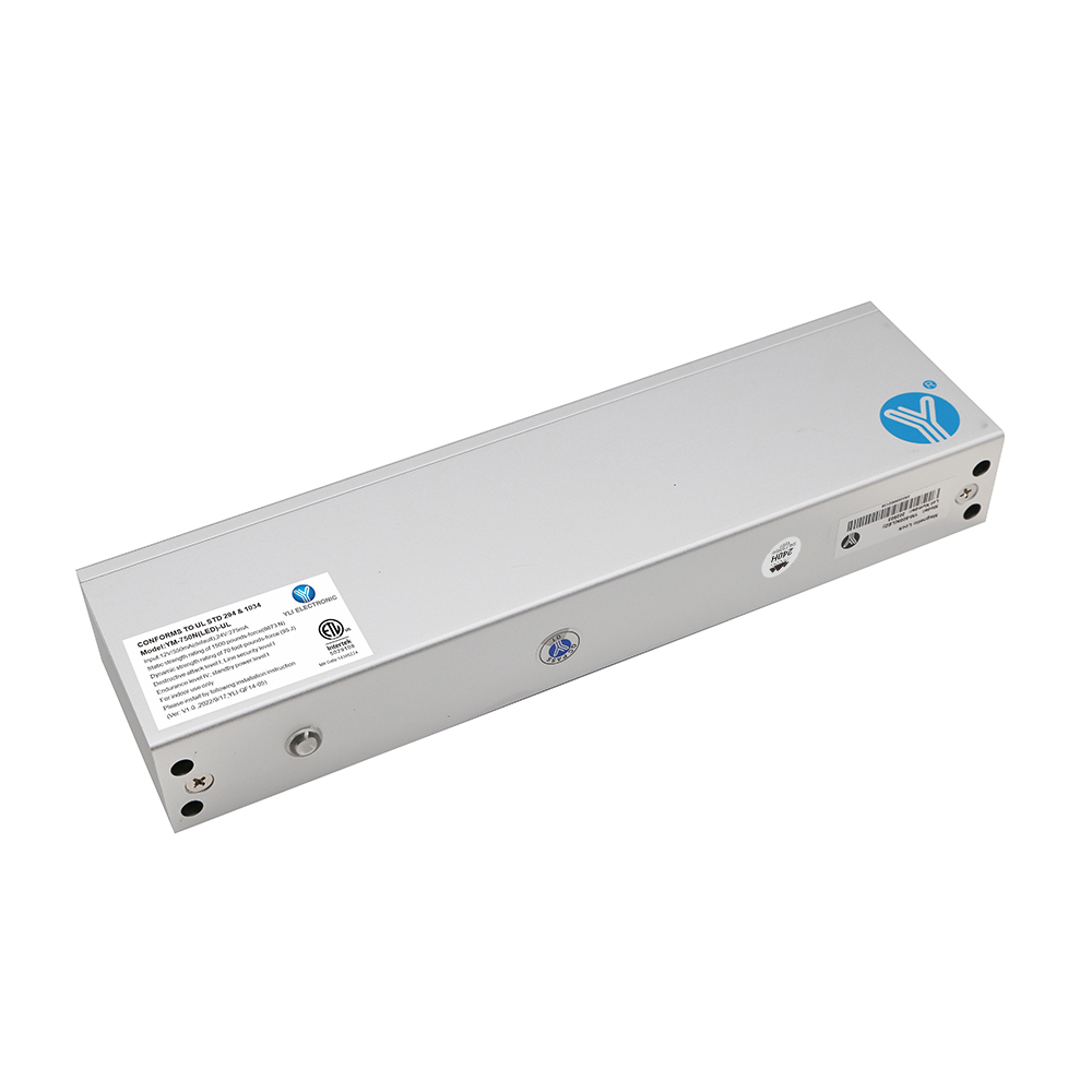 YM-750N(LED)-UL單門磁力鎖附信號輸出,通過美國UL294(門禁系統及組件安全標準)及UL1034(防盜電子鎖機械裝置安全標準)認證,三級認證,產品在安全性、耐用性和環境適應性等方面,經過了全球最嚴格標準的檢驗,並達到及超過了該標準的要求,為建筑師、顧問工程師、系統集成商和終端用戶提供了權威、客觀的產品性能和質量保證。意林磁力鎖鎖芯特殊加強焊接工藝,抗撞擊力及抗扭力比常規生產工藝強2-3倍,更堅固耐用。表面處理,通過國家實驗室240小時鹽霧測試,達到防氧化、防銹、防腐性能。適用于日常辦公場所或沿海鹽霧,潮濕(如:地鐵,機場,核電站,跨海大橋,港口碼頭,醫療機構,沿海城市建筑)等場景使用。